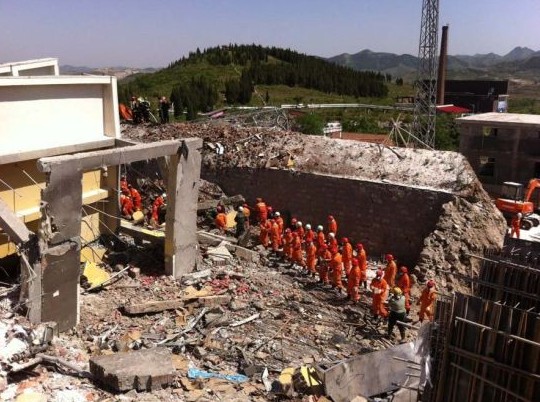 据目击者称,现场的爆炸威力巨大,三层的车间几乎变成了一片废墟,钢筋混凝土的屋顶绝大多数坍塌。由于现场的地形复杂,容不下多辆大型救援车同时施救,救援只能通过人工进行,因此救援进展缓慢。
