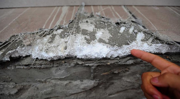 近日,位于湖北武汉的“三金华都”小区的不少居民反映楼盘被“泡沫”包裹,火灾安全隐患严重。记者来到现场调查发现住宅楼的外墙保温层是泡沫材料,一点即燃。公安部、住房与城乡建设部联合制定的《民用建筑外保温系统及外墙装饰防火暂行规定》规定民用建筑外保温材料的燃烧性能宜为A级,且不应低于B2级。据了解,“三金华都”楼盘使用的泡沫材料属于易燃性建筑材料,是B3级,并未达到规定要求。而该开发商选用劣质保温材料,置居民安全不顾,业主多次反映无果。该小区的开发商武汉三金房地产开发有限公司的负责人解释,大楼外墙建成时保温材料的新规定尚未出台。但不少业主表示担忧,“我们的安全谁来保障?”