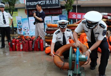 上海市销毁假冒伪劣渔用“三救”产品活动在崇明举行。活动现场,一块块宣传展板图文并茂地向渔民群众介绍渔业安全知识及救生衣、救生筏等使用方法。市渔监部门对近年来查处的部分假冒伪劣渔用产品及救生圈、救生衣、救生筏、灭火器等进行现场销毁。
